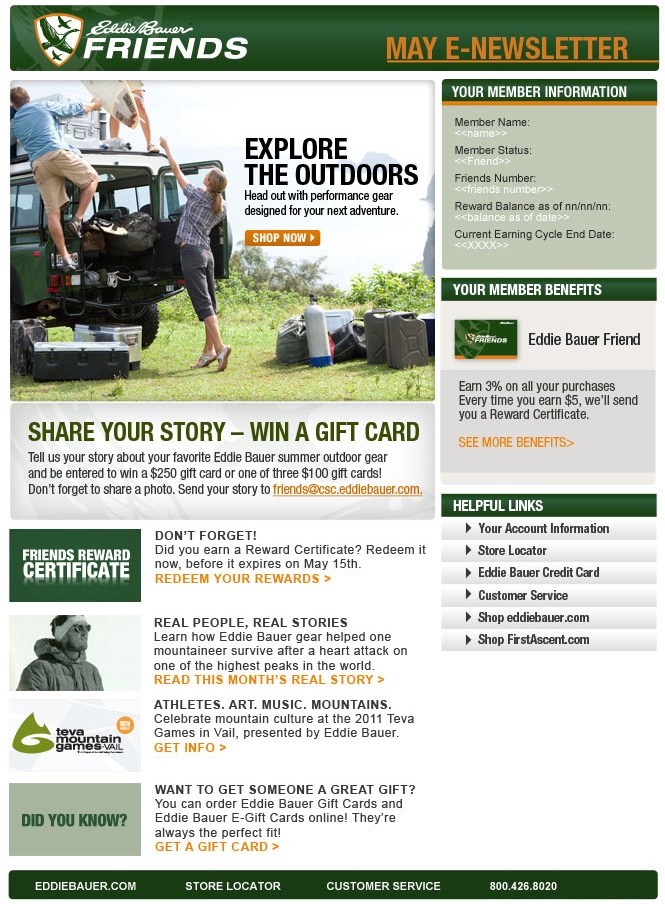 Eddie Bauer Friends loyalty program newsletter — May edition